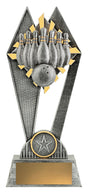 The Peak Series is an innovative set of trophies offering super value for such an impressive size range. An elevated design that showcases stylish Tenpin theme against vibrant sunray background. Available in 3 sizes.