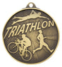 Triathlon medal in gold, silver or bronze. Effective medal design illustrates the range of activities involved in the triathlon. The medals meet budget requirements while still presenting an interesting and appealing design. Ribbons in all colours and medal boxes to suit.